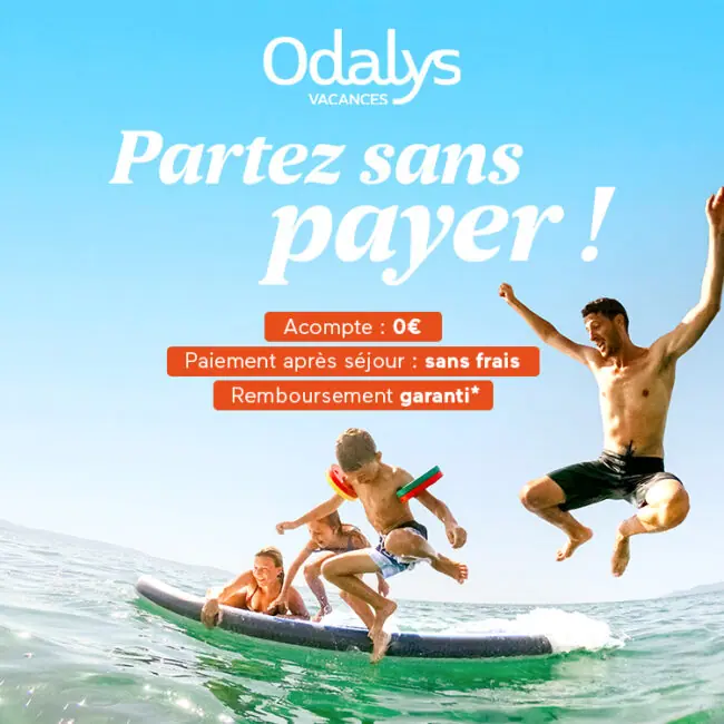 Alors que l’ensemble de ses établissements rouvrent progressivement leurs portes partout en France et en Espagne, le Groupe Odalys poursuit son engagement à accompagner les Français dans leurs projets de départ cet été avec le lancement d’une nouvelle offre à durée limitée « Partez sans payer ». Proposée pour toute réservation faite en mai pour des séjours en juillet et août, elle permet aux vacanciers de réserver sans avancer le montant de leur séjour au moment de leur réservation et de ne régler le montant qu’à leur retour. Cette flexibilité de paiement est doublée d’une offre Remboursement Garanti* permettant d’annuler gratuitement son séjour jusqu’au jour de départ en cas de nouvelles restrictions liées au Covid.