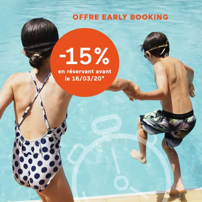 *Offre valable pour tout séjour de 7 nuits minimum (liste des résidences et typologies concernées par l’offre sur odalys-vacances.com) réservé avant le 31/01/2020 (inclus) et effectué entre le 04/04/2020 et le 30/05/2020 (non inclus) ; et avant le 16/03/2019 (inclus) et effectué entre le 30/05/2020 et le 11/07/2020 (non inclus) ou entre le 29/08/2020 et le 30/10/2020. Cette réduction est applicable uniquement sur le tarif hébergement et non cumulable avec l’offre 2 semaines consécutives ou toute autre offre spéciale.